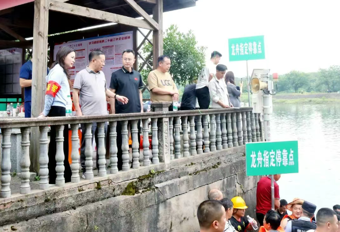 鄭國良、余洪雷分別到龍舟競渡點實地踏勘河道埠頭周邊環(huán)境,詳細(xì)了解賽道布置、觀賽區(qū)域、路面管控、車輛停放等安全措施落實情況,認(rèn)真聽取有關(guān)情況匯報,就進(jìn)一步做好現(xiàn)場秩序維護(hù)、后勤保障、應(yīng)急救援等工作作強(qiáng)調(diào)。