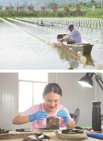眼下,正是“種植”珍珠蚌的好時節(jié)。近日,在位于萬年縣現(xiàn)代農(nóng)業(yè)產(chǎn)業(yè)園的珍珠養(yǎng)殖基地內(nèi),蚌農(nóng)忙著接種、投放、管理珍珠蚌。湖面上滿是浮瓶,閃爍著如珍珠般的光澤,繪就出一幅別樣的水面“農(nóng)耕”圖景。 陳寧 曹智琴 攝影報道