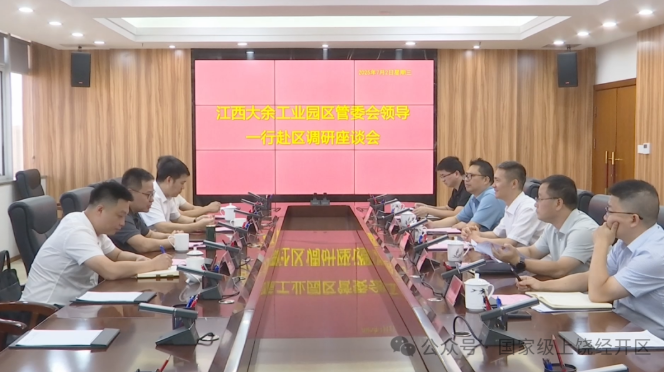 7月2日,大余工業(yè)園區(qū)黨工委委員、管委會(huì)掛職副主任涂少波帶隊(duì)到我區(qū)調(diào)研并座談,區(qū)黨工委委員、管委會(huì)副主任齊小鵬主持座談會(huì)。