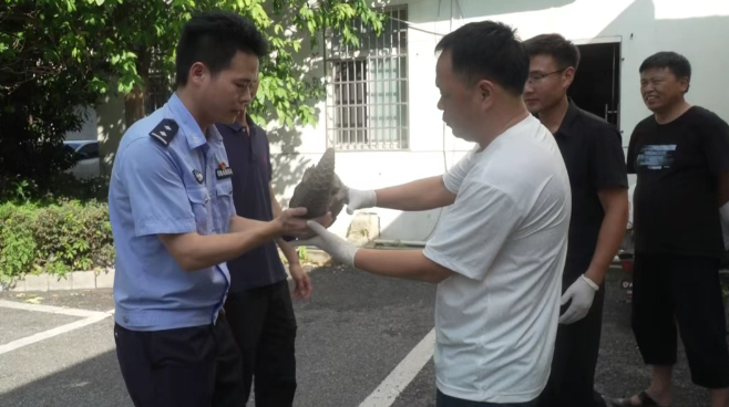 當天下午,金盤嶺公安派出所民警將一只身披鎧甲的小家伙送到了鄱陽縣林業(yè)野生動物救助站。