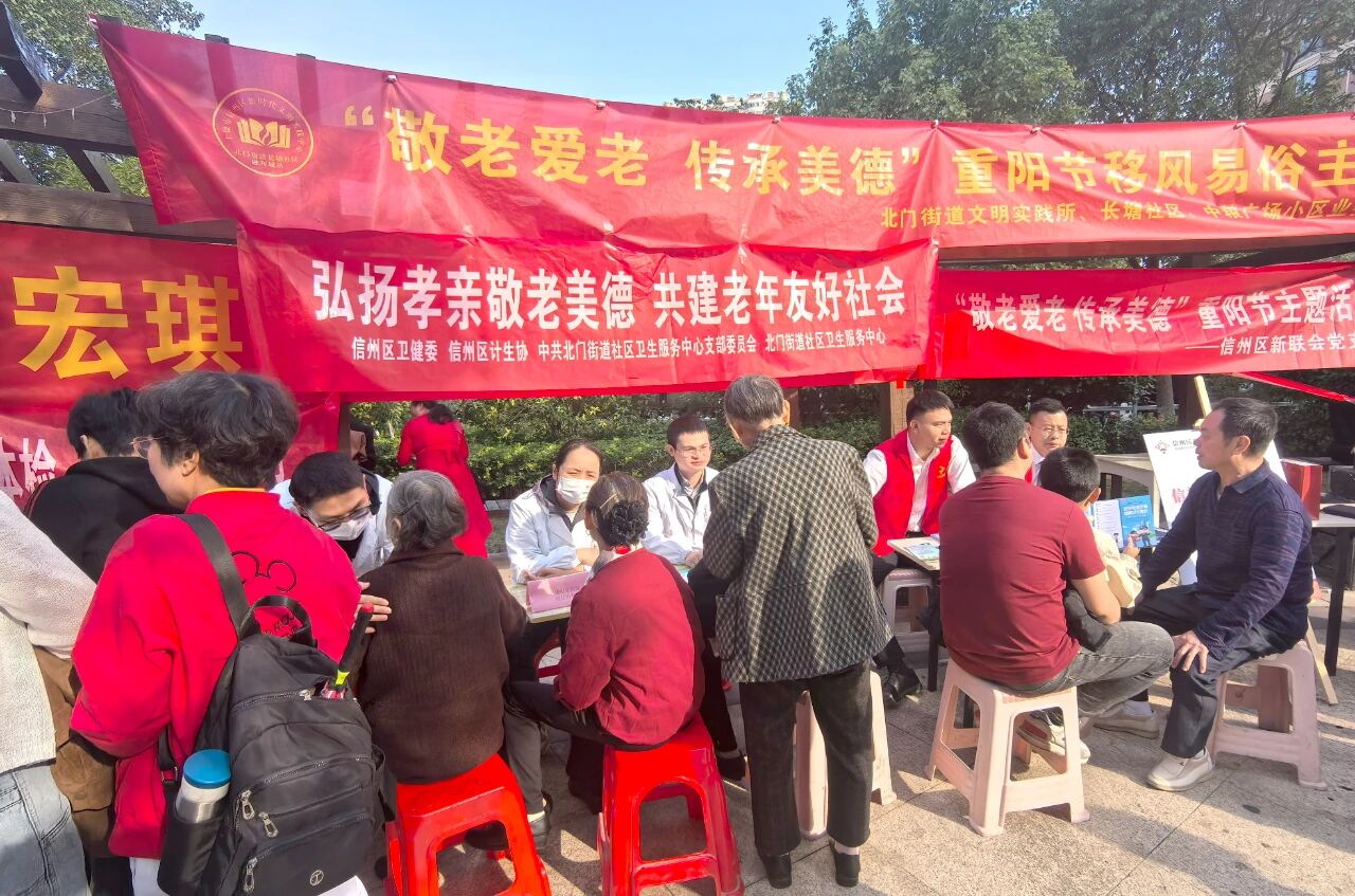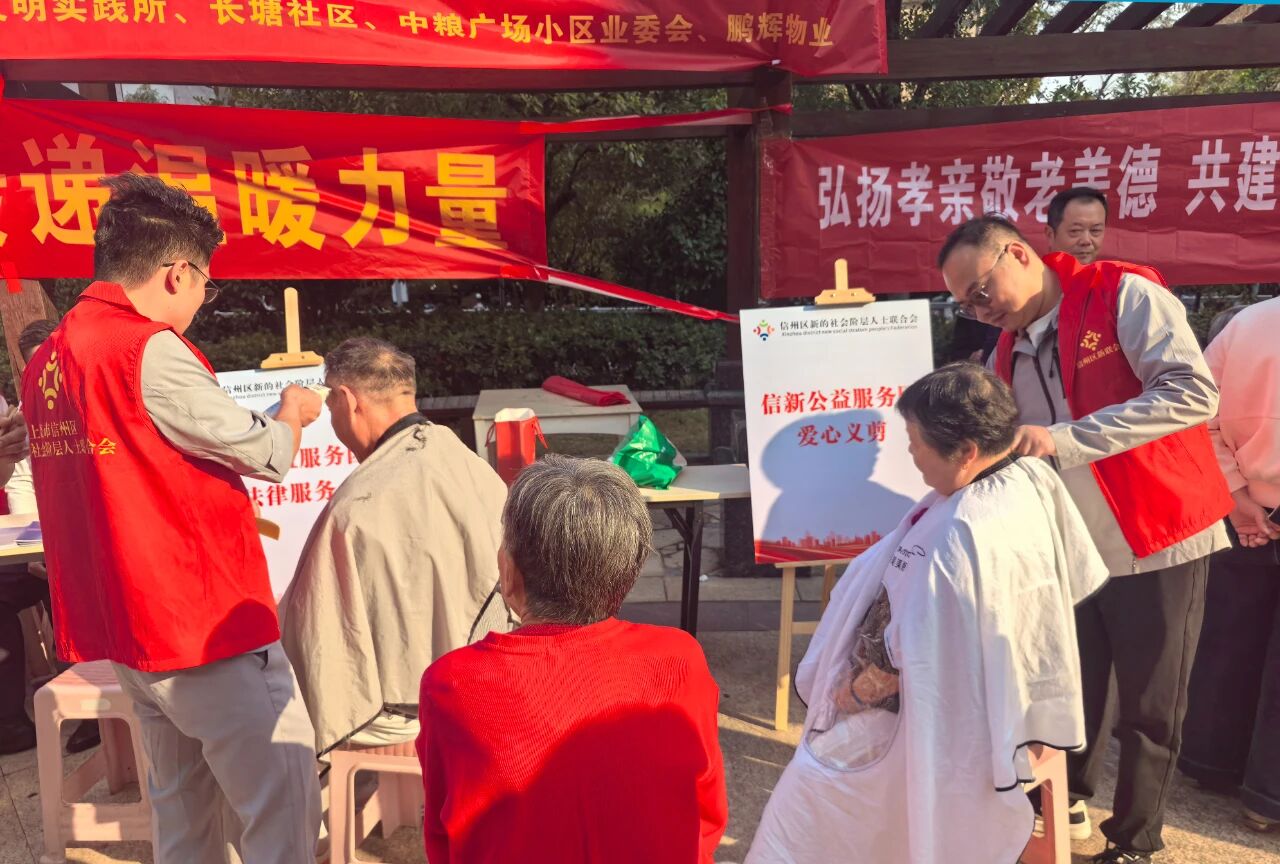 一大早,社區(qū)工作人員便將各類“服務臺”直接搬到了老人們家門口,一碗碗熱氣騰騰的愛心粉端上桌,暖胃又暖心;義診攤位前,醫(yī)生們正耐心地為老人們量血壓、查血糖,細致解答健康疑問;義剪區(qū)里,理發(fā)師嫻熟地修剪頭發(fā),老人們個個精神煥發(fā);法律服務點上,志愿者用通俗易懂的語言講解養(yǎng)老詐騙防范、財產(chǎn)繼承等法律知識?!耙淮笤缇湍艹缘綗岷醯拿追?,還能免費剪頭發(fā)、查身體,這節(jié)過得太舒心啦!”長塘社區(qū)的劉奶奶笑著說道。