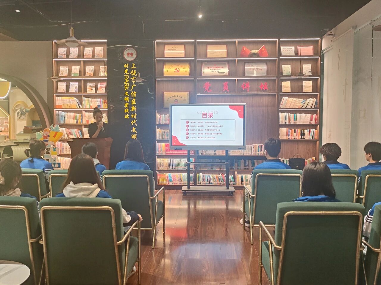 10月30日晚,廣信區(qū)木言者書店內(nèi)座無虛席,一場以“強(qiáng)國復(fù)興有我 青春挺膺擔(dān)當(dāng)”為主題的黨的二十屆四中全會(huì)精神宣講活動(dòng)在此溫情啟幕。區(qū)青年講師團(tuán)成員金庸圍繞“十五五”規(guī)劃核心要義,為來自東南智慧技工學(xué)校的15名學(xué)生及中建五局代表帶來了一堂深刻的青春思政課,激勵(lì)青年在新時(shí)代浪潮中錨定方向、勇毅前行。
