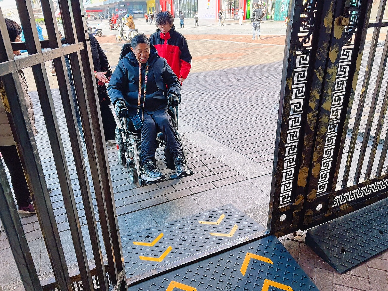 雖是隨口一提,卻被網(wǎng)格員記在了心里。當天下午,網(wǎng)格員對大門進行測量,并采購匹配的無障礙設(shè)施。鋪設(shè)完成后,工作人員特意邀請何師傅現(xiàn)場試用。何師傅坐著輪椅緩緩駛?cè)霟o障礙坡道,進出小區(qū)順暢無阻,困擾許久的出行難題徹底解決,他臉上滿是欣慰的笑容?!斑@下好了,以后我自己就能隨時出門轉(zhuǎn)轉(zhuǎn),真是感謝你們!”