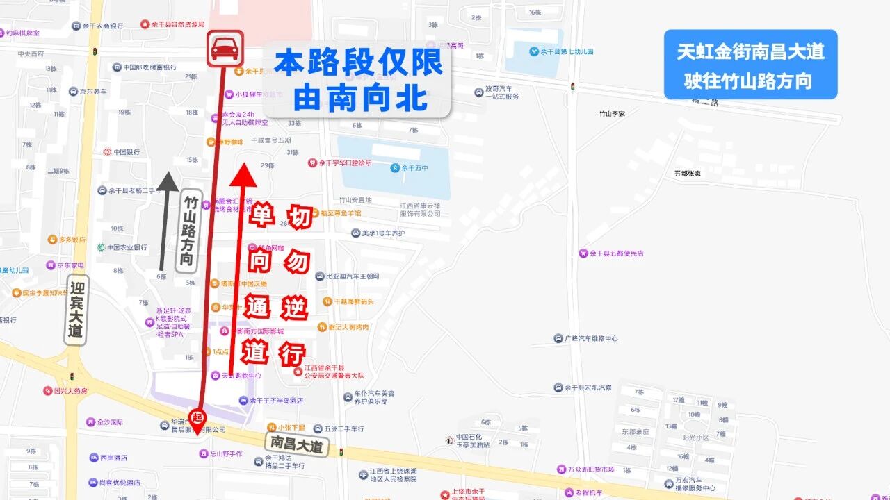 關(guān)于春節(jié)期間余干縣城區(qū)部分路段實(shí)施臨時(shí)單向通行管制的公告