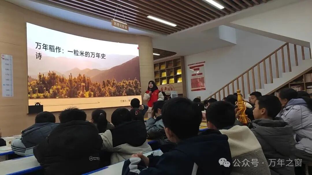 下午,高年級班學生來到一樓教室,與中年級班同學一同聆聽祝宇欣老師帶來的本土課程《一粒米的萬年史詩》。從萬年貢米的種植歷史到稻作文化的傳承,孩子們在熟悉的鄉(xiāng)土中發(fā)現(xiàn)了嶄新的驕傲。