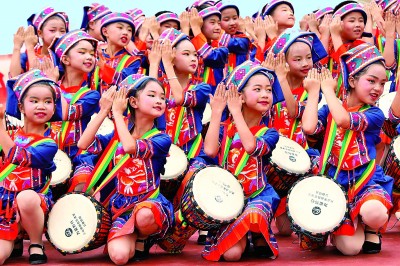 “六一”國際兒童節(jié)臨近,各地開展豐富多彩的活動,讓孩子們在歡聲笑語中迎接自己的節(jié)日。圖為5月30日,貴州省黔東南苗族侗族自治州施秉縣第四小學的學生在迎“六一”活動中表演節(jié)目。新華社發(fā)