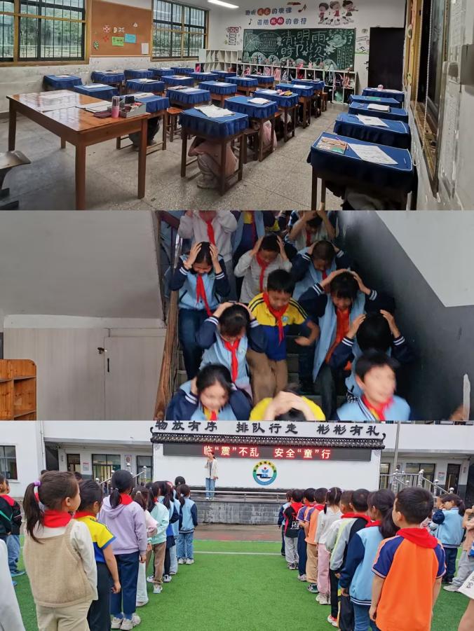 活動中,各班通過主題班會向?qū)W生講解地震成因、避險常識及自救互救技能,結(jié)合視頻和案例強(qiáng)化學(xué)習(xí)效果。隨后,全校師生進(jìn)行了防震應(yīng)急演練,模擬地震突發(fā)場景。隨著警報響起,學(xué)生們迅速蹲到課桌下避險,隨后在老師指揮下有序疏散至操場,整個過程緊張高效,達(dá)到了預(yù)期目標(biāo)。