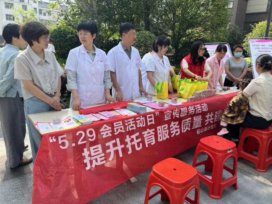 5月27日,鉛山縣計生協(xié)、河口鎮(zhèn)計生協(xié)聯(lián)合縣婦幼保健院在縣城南水時代廣場開展以“提升托育服務質量 共建生育友好社會”為主題的群眾性宣傳服務活動。