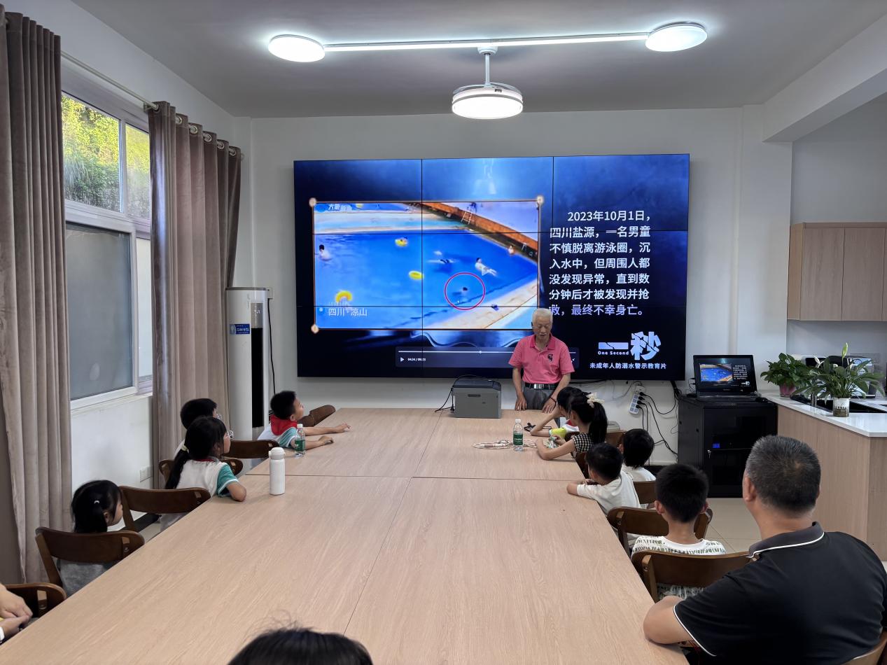 活動中,孩子們首先在會議室觀看防溺水安全教育視頻。視頻以動畫演示和真實案例結合的方式,系統(tǒng)講解溺水危害、預防措施及自救互救方法。生動的內容讓孩子們直觀認識到溺水風險,現場學習氛圍熱烈,孩子們不時交流討論,安全意識進一步增強。
