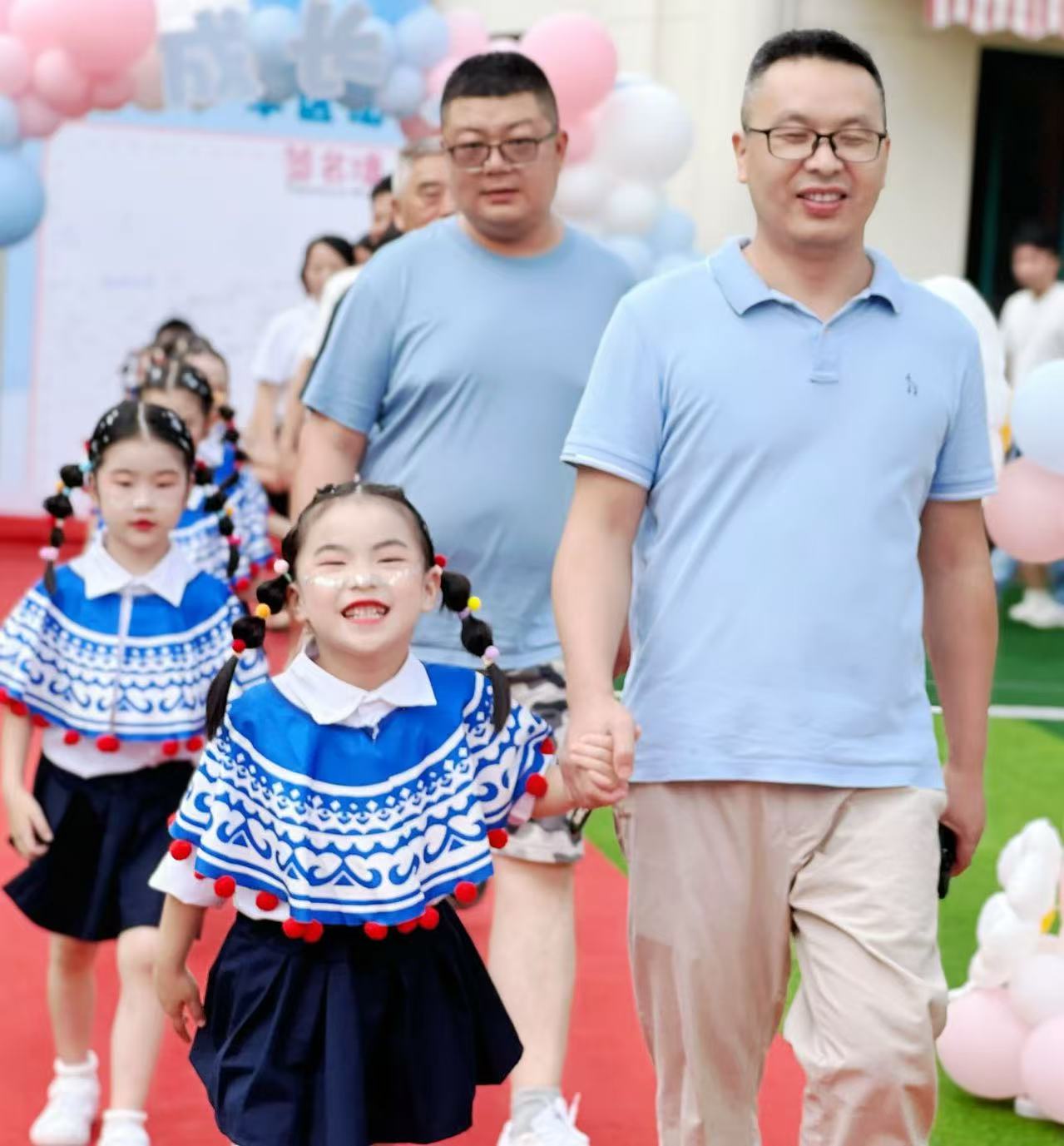 活動伊始,孩子們在簽名墻上鄭重寫下名字,踏著紅毯穿過“成長之門”,隨后,園長致辭為典禮拉開序幕,幼兒代表分享成長趣事,家長代表真摯感恩園所培育,教師代表含淚訴說不舍與祝福,溫情氛圍瞬間彌漫全場。