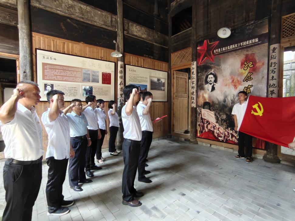在方志敏、粟裕等領(lǐng)導(dǎo)人曾工作居住的二進(jìn)磚木結(jié)構(gòu)樓房前,講解員深情講述1934年紅十軍團(tuán)在此整編、方志敏主持召開北上抗日誓師大會(huì)的歷史場景。重點(diǎn)介紹粟裕在此組建挺進(jìn)師、率部突圍的英勇事跡,以及“黨要我做什么事,雖死不辭”的堅(jiān)定信念。支部在紅十軍團(tuán)政委員會(huì)舊址內(nèi)部還組織全體黨員開展了一次重溫入黨誓詞活動(dòng),通過活動(dòng)讓黨員感受到了黨的神圣,堅(jiān)定了入黨信念,激勵(lì)全體黨員以更加飽滿的熱情發(fā)揮共產(chǎn)黨員的先鋒模范作用,永葆共產(chǎn)黨員的政治本色。隨后,支部在單位黨員活動(dòng)室開展專題學(xué)習(xí),同時(shí)由青年委員上了一堂精神文明建設(shè)在郵政事業(yè)發(fā)展中的作用的黨課。