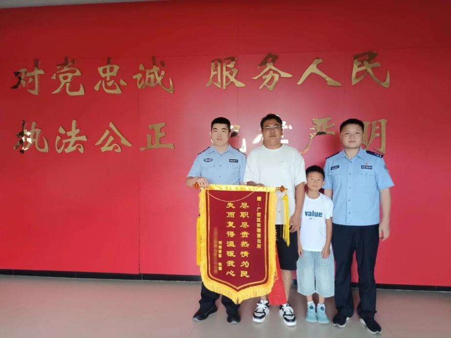近日,一面寫著“盡職盡責熱情為民 失而復得溫暖我心”的紅色錦旗被送到了廣信區(qū)田墩派出所,送旗人余先生面帶笑容,向派出所的民輔警們連連表達感謝。這面錦旗的背后,是一段民警快速幫游客找回失物的暖心故事。