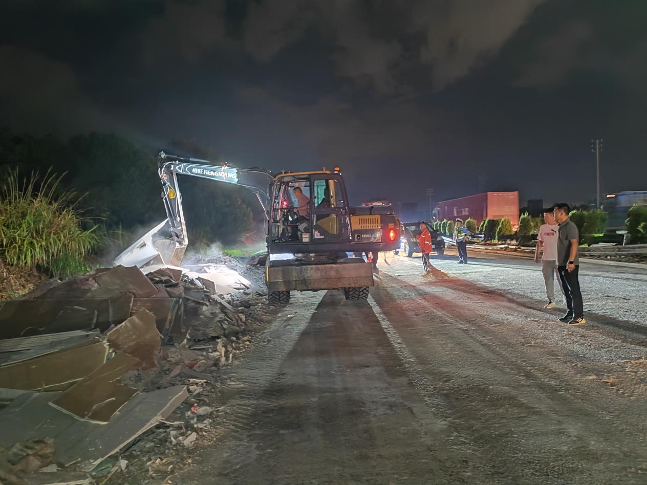 接到交警部門聯(lián)動(dòng)通知后,信州公路事業(yè)發(fā)展中心養(yǎng)護(hù)應(yīng)急隊(duì)伍迅速響應(yīng),組織出動(dòng)挖掘機(jī)1臺(tái),養(yǎng)護(hù)作業(yè)人員5名,安全警示設(shè)施若干抵達(dá)現(xiàn)場(chǎng)。抵達(dá)后,工作人員第一時(shí)間與交警部門對(duì)接分工,配合交警部門專業(yè)清障隊(duì)伍進(jìn)行障礙物清理,聚焦“快速清障、恢復(fù)通行”,通過(guò)挖掘機(jī)將路面上散落的貨物轉(zhuǎn)移至臨時(shí)區(qū)域,再組織人員用鐵鍬、掃帚對(duì)路面散落的包裝碎片、貨物殘?jiān)M(jìn)行全面清掃,同時(shí)檢查路面是否因貨車側(cè)翻出現(xiàn)破損,確保清理后的路面符合安全通行標(biāo)準(zhǔn)。