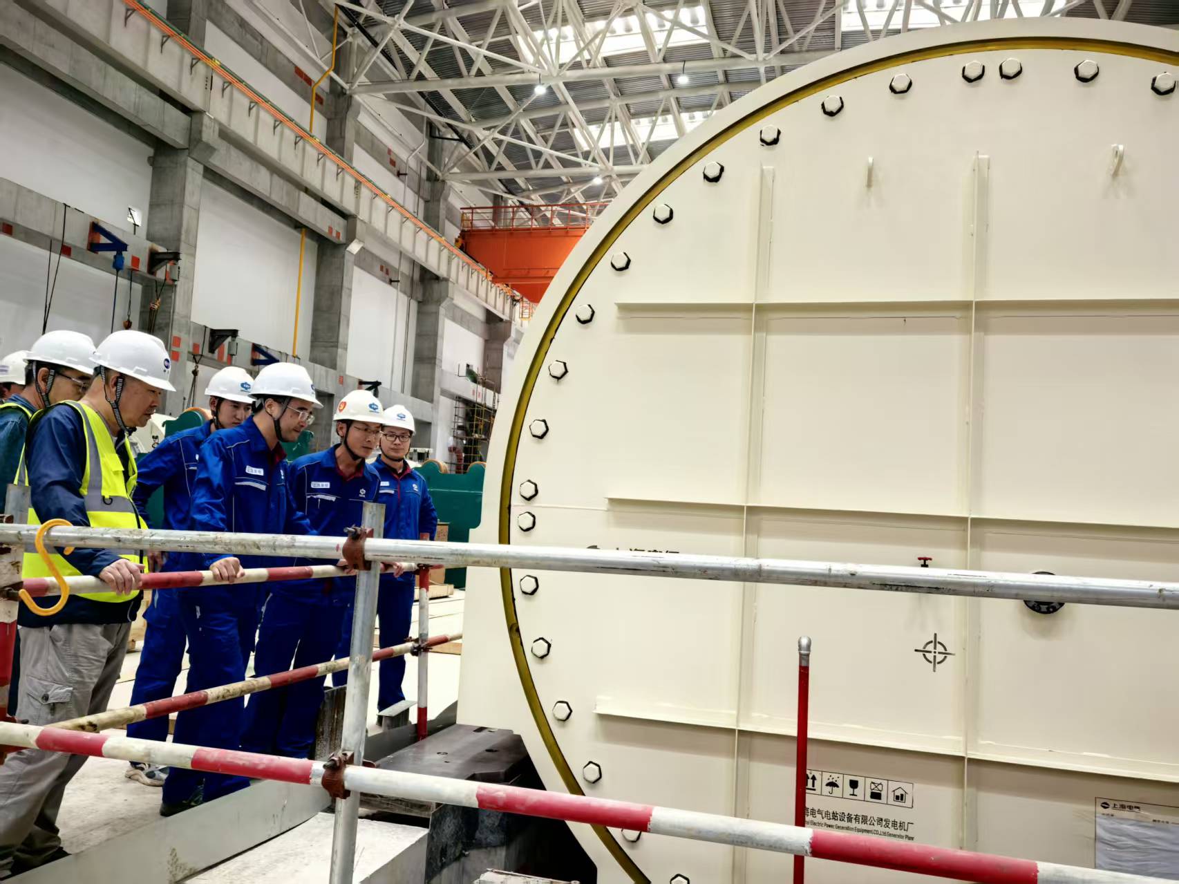 吊裝過程中,現(xiàn)場指揮人員指令清晰,操作人員配合默契,安全監(jiān)督人員全程監(jiān)護(hù)。整個(gè)吊裝流程如行云流水,各個(gè)環(huán)節(jié)銜接有序,最終實(shí)現(xiàn)了定子吊裝“一次就位、零偏差”的優(yōu)異目標(biāo),充分展現(xiàn)了參建各方卓越的項(xiàng)目管理能力和精湛的施工技術(shù)水平。
