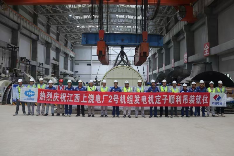 本報(bào)訊 近日,伴隨著清脆的哨聲和液壓提升裝置的平穩(wěn)運(yùn)行,重達(dá)390噸的“巨無霸”——上饒發(fā)電廠2×1000MW超超臨界發(fā)電機(jī)組2號(hào)機(jī)組發(fā)電機(jī)定子,被大型吊裝設(shè)備緩緩吊起,經(jīng)過起吊、平移、轉(zhuǎn)向、下落等一系列精準(zhǔn)操作,安全、精準(zhǔn)、平穩(wěn)地降落至既定基座上。這標(biāo)志著2號(hào)機(jī)組安裝工程取得了里程碑式的重大進(jìn)展,為后續(xù)汽輪機(jī)、發(fā)電機(jī)等核心設(shè)備的全面安裝工作創(chuàng)造了決定性條件。