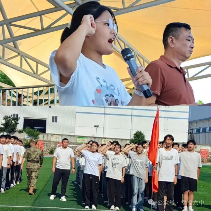 新生代表上臺(tái)發(fā)言,號(hào)召全體同學(xué)以積極心態(tài)迎接軍訓(xùn)挑戰(zhàn),在隊(duì)列訓(xùn)練中磨礪意志、挑戰(zhàn)自我,在集體生活中團(tuán)結(jié)協(xié)作,讓青春在汗水中綻放光芒,以堅(jiān)韌精神擁抱高中旅程。隨后,在新生代表帶領(lǐng)下,全體新生面向國(guó)旗莊嚴(yán)宣誓。