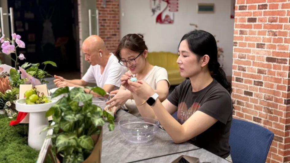 活動現(xiàn)場布置得溫馨雅致,綠植點(diǎn)綴其間,燈籠、氣球增添了節(jié)日的喜慶。在專業(yè)老師的指導(dǎo)下,員工們興致勃勃地投入到月餅制作中。大家揉面團(tuán)、包餡料、壓模具,一個個動作有模有樣。手中的面團(tuán)在巧手下變幻出可愛的造型,彩色的餡料更是為月餅增添了幾分靈動。制作過程中,大家相互交流技巧、分享心得,歡笑聲不斷,現(xiàn)場洋溢著歡樂融洽的氛圍。當(dāng)看到自己親手制作的月餅新鮮 “出爐”,大家臉上都露出了欣喜的笑容,滿滿的成就感油然而生。