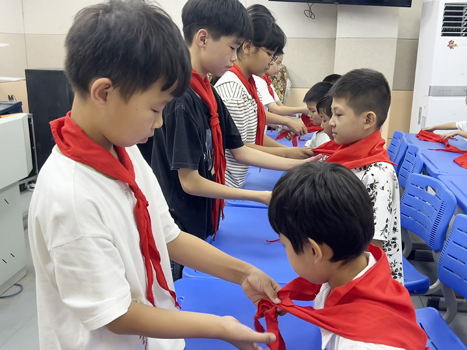 在莊重的入隊(duì)儀式上,老隊(duì)員為新隊(duì)員佩戴紅領(lǐng)巾,鮮艷的領(lǐng)巾在胸前飄揚(yáng),新隊(duì)員面向隊(duì)旗莊嚴(yán)宣誓,稚嫩的聲音堅(jiān)定有力。火紅的隊(duì)旗見證著新一代少年的成長誓言。