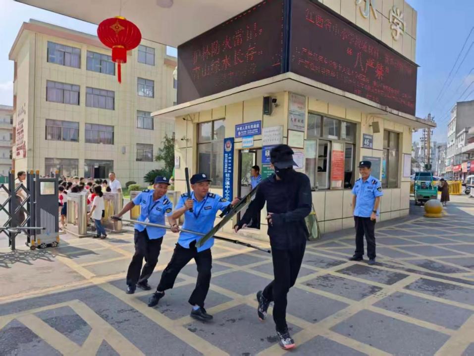 警報響起后,全校迅速響應(yīng)。安保團隊第一時間攜帶防暴叉、盾牌等防護裝備趕赴事發(fā)地點進行初期處置,并同步聯(lián)系沙溪鎮(zhèn)派出所請求支援。各班級值班教師反應(yīng)迅速,立即組織學(xué)生關(guān)閉教室門窗,引導(dǎo)學(xué)生有序躲避至課桌下方或教室后方安全區(qū)域,同時要求學(xué)生保持安靜、遠離門窗,避免暴露自身位置。整個過程中,師生配合默契,動作規(guī)范有序。