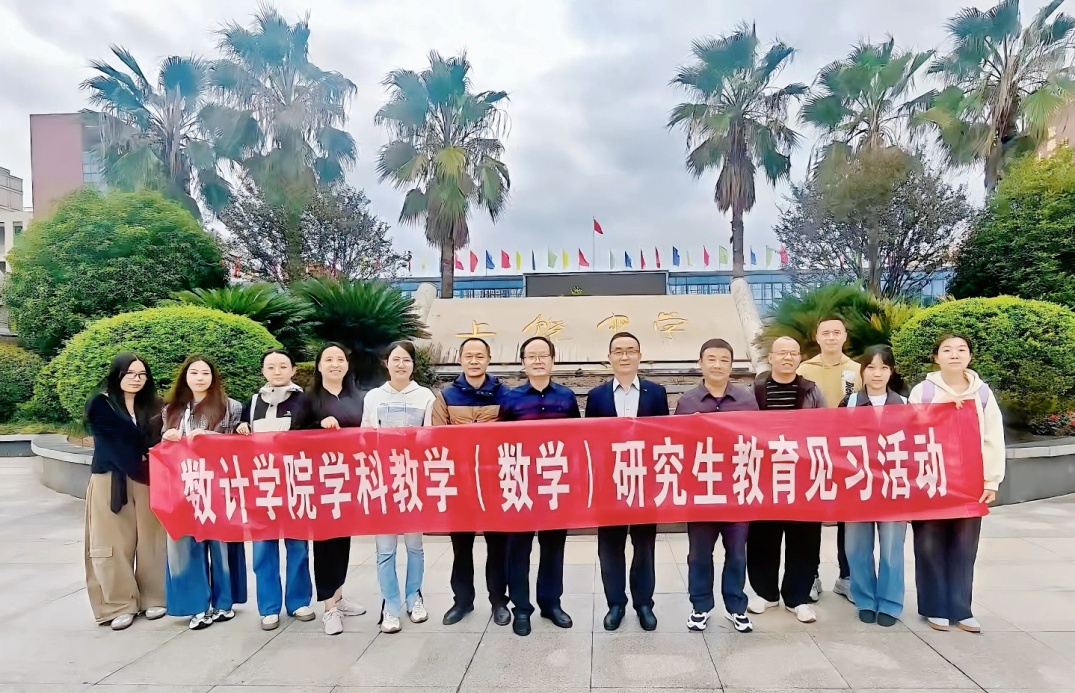 為深化校地共建,充分發(fā)揮優(yōu)益教育資源的輻射作用,10月21日下午,上饒中學(xué)與上饒師范學(xué)院數(shù)學(xué)與計(jì)算科學(xué)學(xué)院聯(lián)合舉辦上饒師范學(xué)院“研究生教育實(shí)踐基地”授牌儀式、校外合作導(dǎo)師授聘儀式暨首屆學(xué)科教學(xué)(數(shù)學(xué))專業(yè)研究生見習(xí)對(duì)接會(huì)。上饒中學(xué)黨委委員、副校長(zhǎng)張勇主持儀式,高二騰飛年級(jí)主任郭大東、奧訓(xùn)中心主任呂文彬、教研處副主任劉玲麗、數(shù)學(xué)教研組大組長(zhǎng)余建華參會(huì),上饒師范學(xué)院數(shù)學(xué)與計(jì)算科學(xué)學(xué)院院長(zhǎng)汪小明教授率學(xué)院教務(wù)辦主任劉佩琳、教師教育教研室主任肖茂君及2025級(jí)學(xué)科教學(xué)(數(shù)學(xué))專業(yè)5位碩士研究生赴會(huì)。