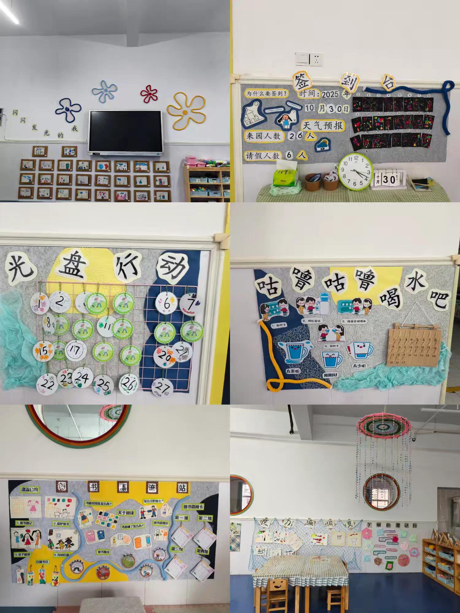 本次評(píng)比采用邊走邊講的參觀形式,各班老師化身講解員,帶著大家走進(jìn)班級(jí)的喝水區(qū)、各個(gè)區(qū)域、光盤行動(dòng)等每一處布置。她們細(xì)細(xì)分享環(huán)境創(chuàng)設(shè)的巧思、主題墻的設(shè)計(jì)亮點(diǎn),以及藏在每一處細(xì)節(jié)里的教育用心——從理念到落地,從墻面到角落,讓每一份環(huán)創(chuàng)都成為看得見的教育故事。