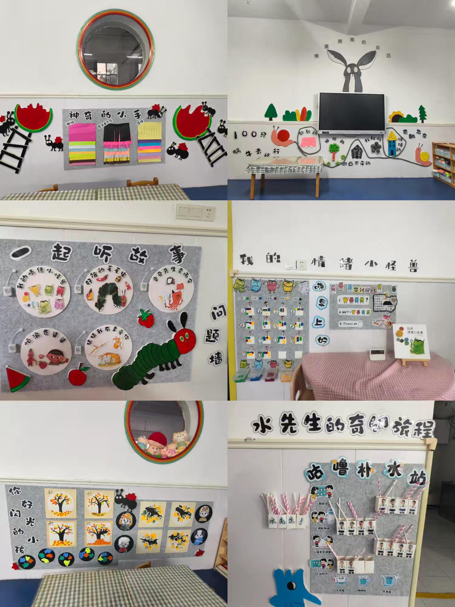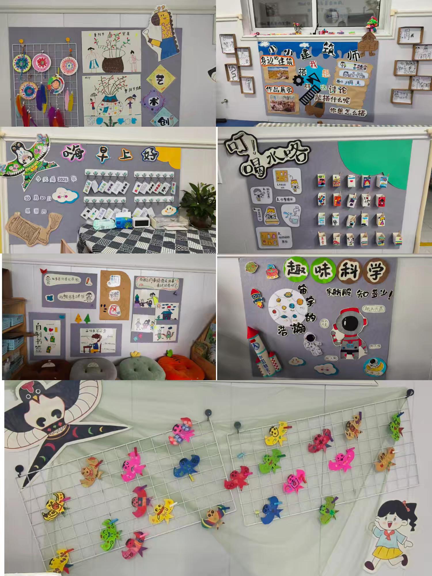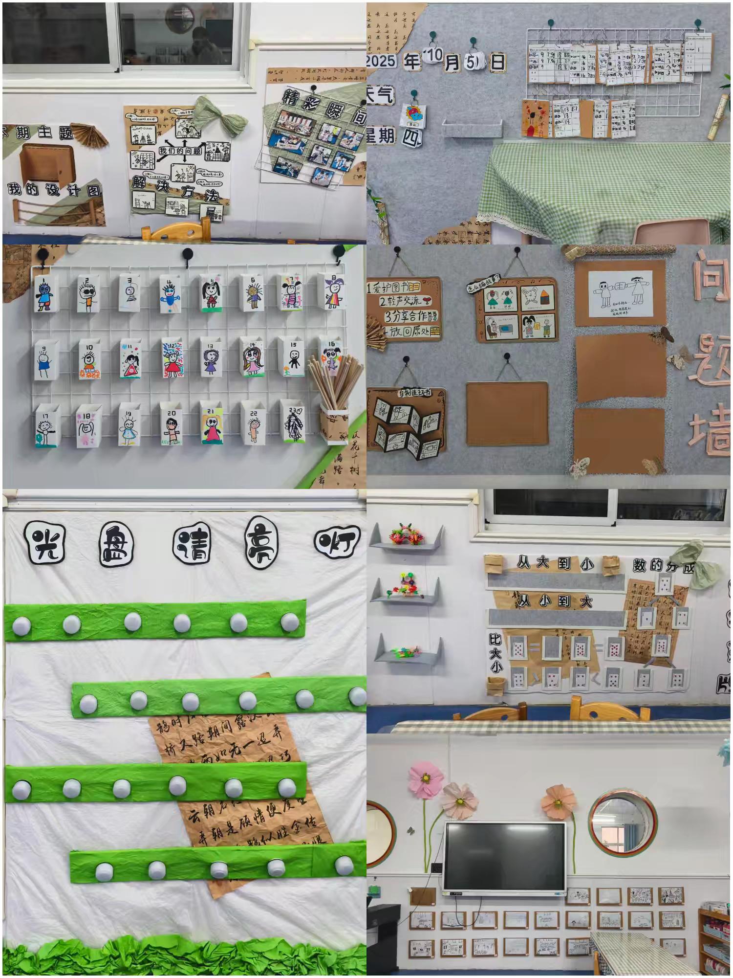 評(píng)比活動(dòng)中,園長(zhǎng)與各班老師共同參觀了所有班級(jí)的環(huán)創(chuàng)區(qū)域。大家在參觀中互相學(xué)習(xí),交流經(jīng)驗(yàn)??偠灾變簣@環(huán)創(chuàng)絕非單純的空間裝飾,它是一門“隱性課程”。每一處精心設(shè)計(jì)的角落、每一種材質(zhì)的巧妙運(yùn)用,都在以兒童的視角構(gòu)建著教育場(chǎng)域——它讓孩子在與環(huán)境的互動(dòng)中萌發(fā)探究欲,在審美體驗(yàn)里滋養(yǎng)創(chuàng)造力,更在潛移默化中培養(yǎng)著他們的合作意識(shí)與生活智慧。這種“潤(rùn)物無聲”的環(huán)境教育,最終將助力孩子在充滿童趣與思考的氛圍中,收獲全面且富有個(gè)性的成長(zhǎng)。(鄭雅雯)