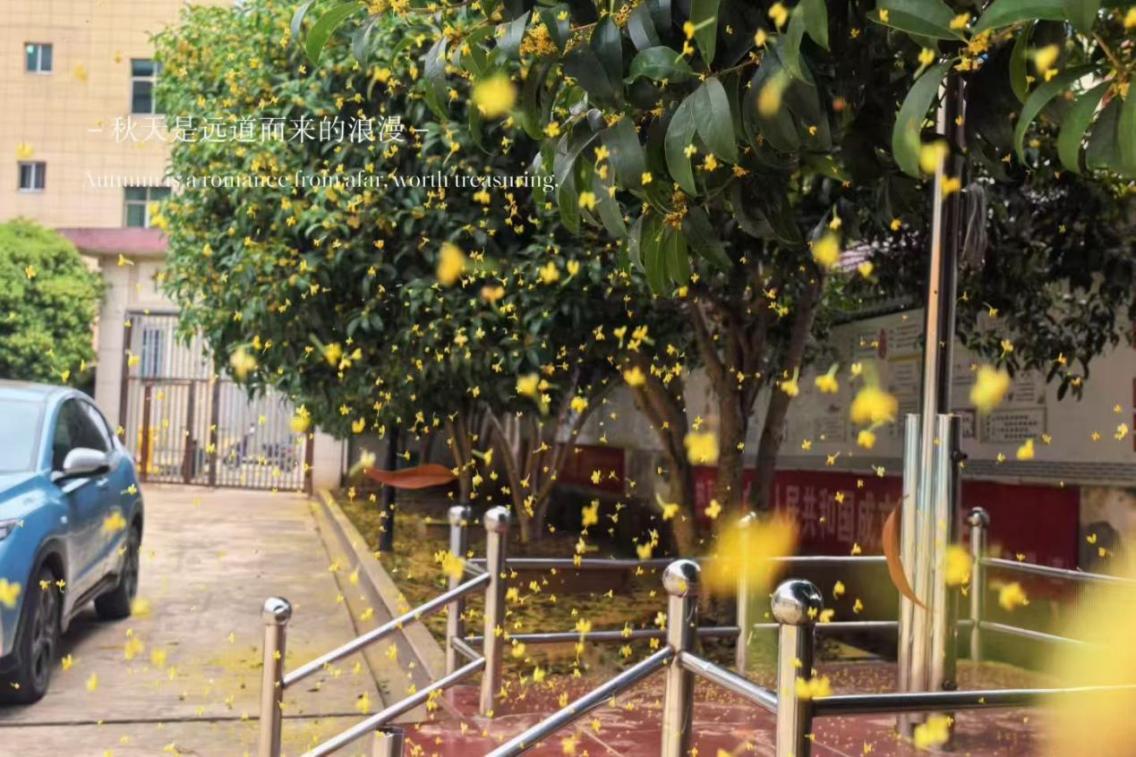秋色正濃,余干縣古埠鎮(zhèn)博水小學(xué)的幾樹桂花不堪秋風(fēng)殷勤相邀,驟然綻滿枝頭。那香氣成陣成片地侵襲而來,馥郁酣暢,將整個校園浸透在甜暖的芬芳里。