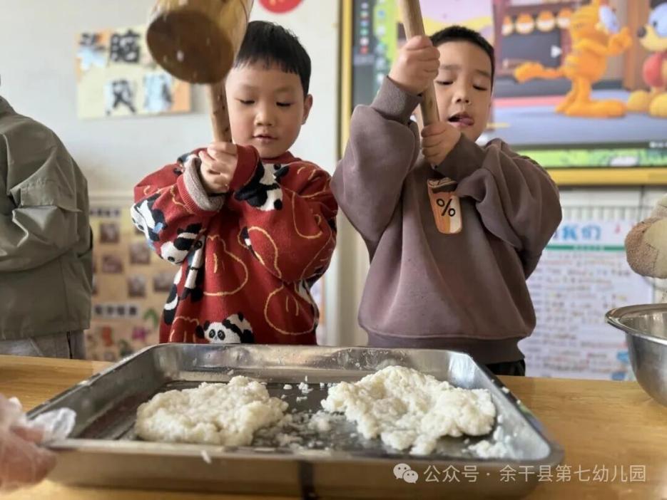 活動(dòng)按幼兒年齡段分層設(shè)計(jì),各環(huán)節(jié)特色鮮明、趣味十足。小班聚焦“腌橘皮”,幼兒在教師引導(dǎo)下剝橘皮、拌糖鹽、裝玻璃罐,沉浸式體驗(yàn)食材腌制的過(guò)程,在感知橘皮清香的同時(shí),初步建立對(duì)食物儲(chǔ)存方式的認(rèn)知;中班以“打糍粑” 為核心,幼兒輪流持搗棒捶打糯米飯,在協(xié)作中將米粒搗制成軟糯的糍粑,品嘗勞動(dòng)成果的同時(shí),深刻體會(huì)團(tuán)結(jié)協(xié)作的意義與勞動(dòng)的價(jià)值;大班開展自助燒烤活動(dòng),幼兒化身“小小燒烤師”,自主完成食材串制、翻烤撒料等操作,在教師的安全看護(hù)下,既享受了味蕾的愉悅,又學(xué)會(huì)了分工合作與耐心等待。