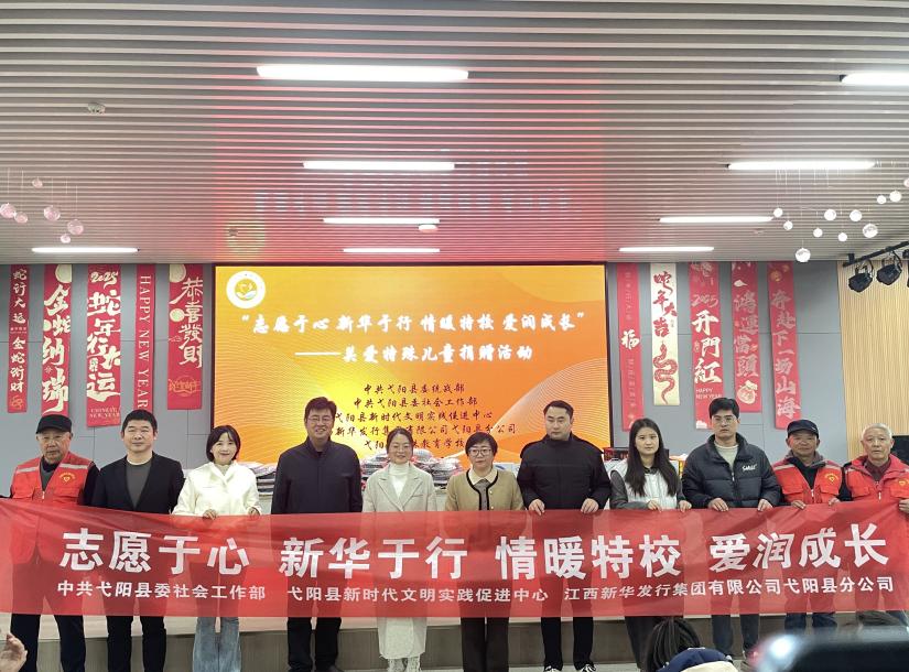 12月5日上午,中共弋陽縣委統(tǒng)戰(zhàn)部、中共弋陽縣委社會工作部、弋陽縣新時(shí)代文明實(shí)踐促進(jìn)中心與江西新華發(fā)行集團(tuán)有限公司弋陽縣分公司聯(lián)合走進(jìn)弋陽縣特殊教育學(xué)校,共同開展“志愿于心 新華于行 情暖特校 愛潤成長”公益捐贈活動(dòng)。
