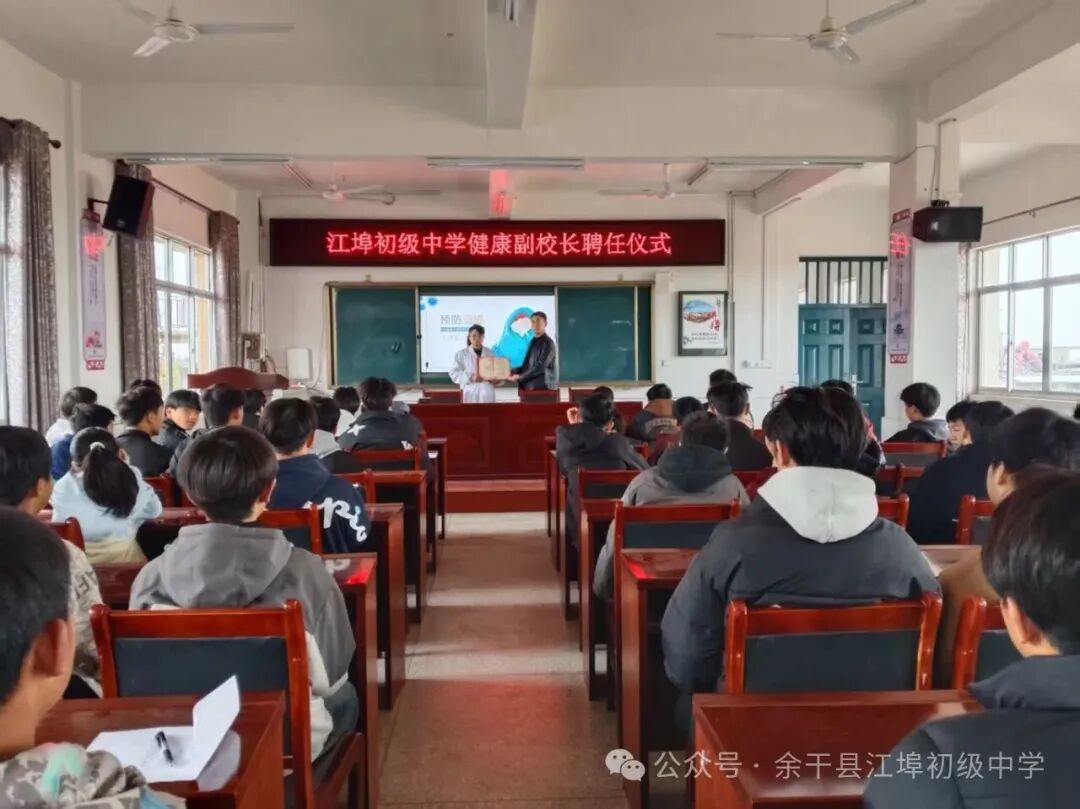 為筑牢校園健康安全防線,提升師生傳染病防控意識與應(yīng)對能力,近日,余干縣江埠初級中學(xué)舉行健康副校長聘任儀式,并同步開展冬季傳染病預(yù)防科普講座,為全校師生身心健康保駕護(hù)航。