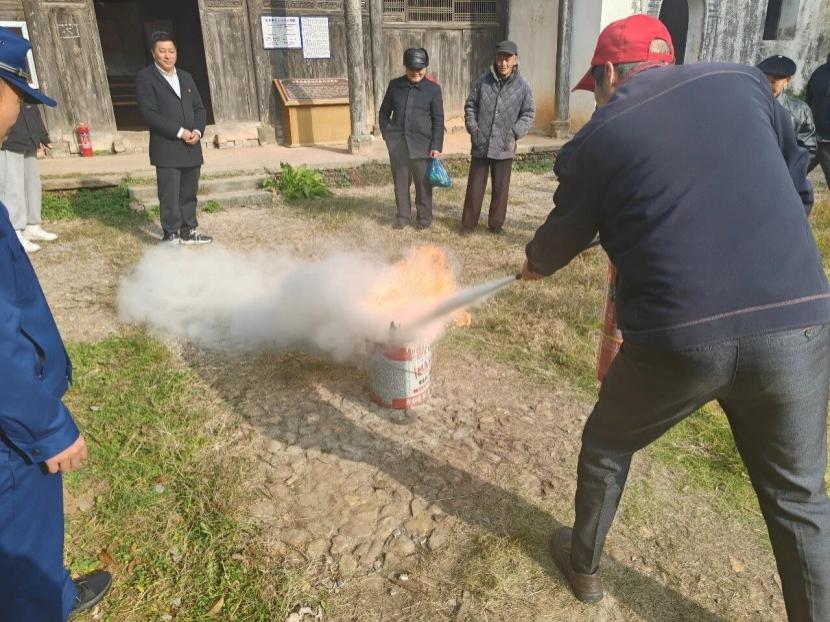 演練現(xiàn)場,不少村民第一次拿起滅火器進(jìn)行實操。“原來使用滅火器有這么多要領(lǐng),這次親手操作一遍,心里踏實多了!”一位參與村民表示。消防隊員系統(tǒng)講解了初起火災(zāi)撲救技巧、疏散逃生要點及文物建筑防火特別注意事項。