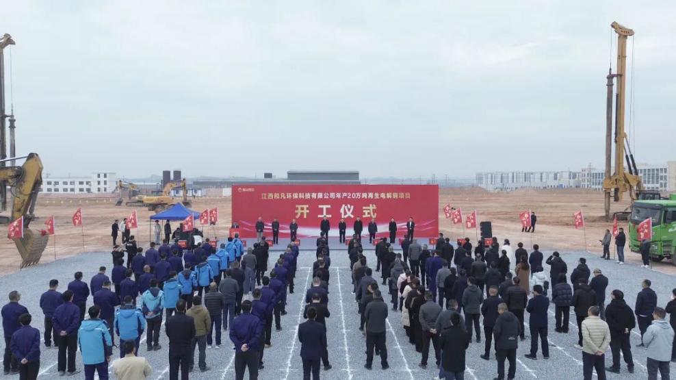 12月23日,江西和凡環(huán)保年產(chǎn)20萬(wàn)噸再生電解銅項(xiàng)目正式開工??h相關(guān)領(lǐng)導(dǎo)、富冶集團(tuán)有限公司董事長(zhǎng)出席開工儀式。