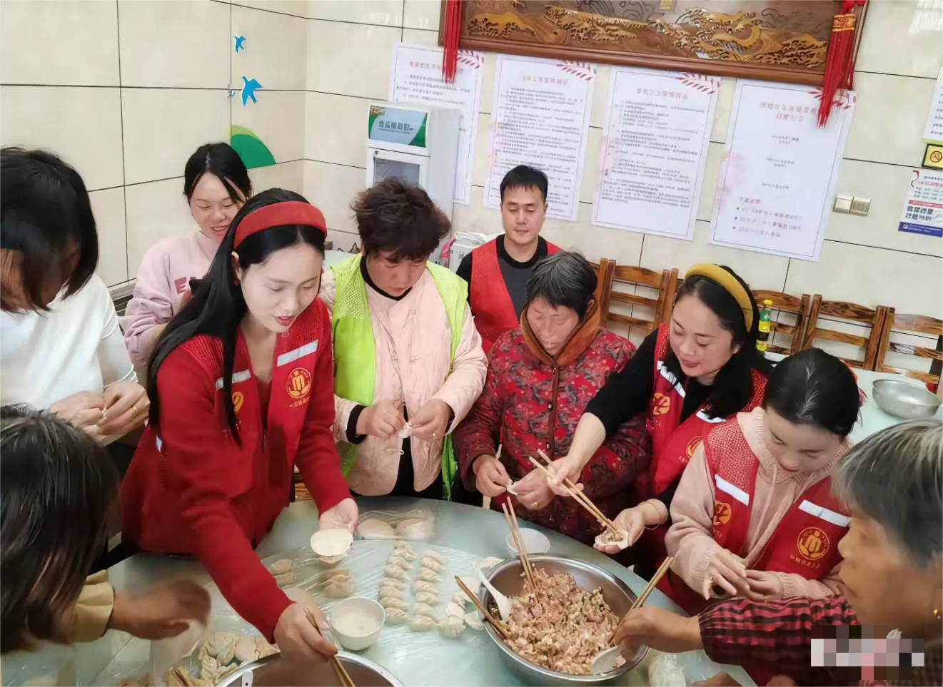 活動(dòng)現(xiàn)場(chǎng)暖意融融、熱鬧非凡。社工與志愿者們分工明確、默契協(xié)作,揉面、搟皮、填餡、捏餃一氣呵成,嫻熟的手法引來陣陣稱贊,歡聲笑語驅(qū)散了冬日的寒意。一只只飽滿圓潤(rùn)的餃子整齊碼放在托盤上,每一道褶皺都包裹著對(duì)老人的濃濃關(guān)愛。