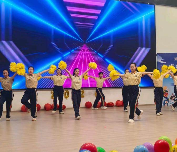 匯演在啦啦操《最好的舞臺》中拉開序幕,動感節(jié)拍與活力舞姿瞬間點燃全場,掌聲歡呼聲此起彼伏,奠定了青春昂揚的基調(diào)。整場匯演分為“青春·綻放”“藝韻·飛揚”“夢想·啟航”三個篇章,搭配同步開展的校園書畫展,全方位呈現(xiàn)師生的藝術(shù)風采。