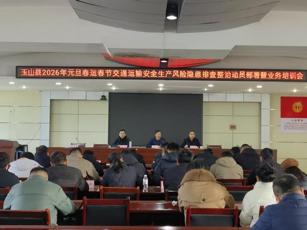 為扎實(shí)開(kāi)展2026年元旦春運(yùn)春節(jié)交通運(yùn)輸安全生產(chǎn)風(fēng)險(xiǎn)隱患排查整治,及時(shí)消除安全隱患,保障人民群眾生命財(cái)產(chǎn)安全,2025年12月31日,玉山縣交通運(yùn)輸局組織舉辦了2026年元旦春運(yùn)春節(jié)交通運(yùn)輸安全生產(chǎn)風(fēng)險(xiǎn)隱患排查整治動(dòng)員部署暨業(yè)務(wù)培訓(xùn)會(huì)。