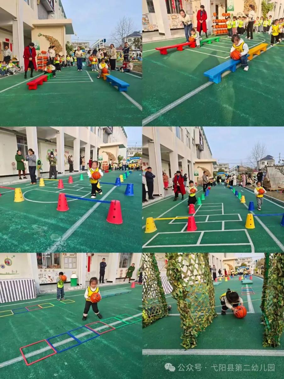 賽場(chǎng)比拼精彩紛呈。障礙跑中,幼兒挑戰(zhàn)鉆爬網(wǎng)、平衡木等項(xiàng)目,堅(jiān)持到底的毅力贏得掌聲;中大班跑酷挑戰(zhàn)賽上,幼兒奮勇爭(zhēng)先、團(tuán)體默契配合,歡呼聲不斷;小班趣味籃球項(xiàng)目里,幼兒專注參與游戲,萌態(tài)萌化全場(chǎng)。