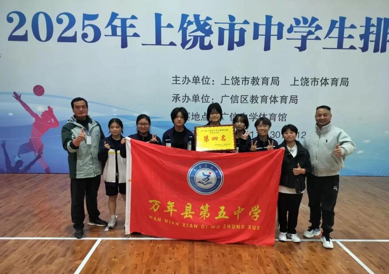 捷報傳來,近日,萬年縣第五中學(xué)女子排球隊(duì)在2025年上饒市中學(xué)生排球比賽中奮勇拼搏,憑借扎實(shí)的技戰(zhàn)術(shù)水平和頑強(qiáng)的競技作風(fēng),斬獲初中女子組第四名的優(yōu)異成績。