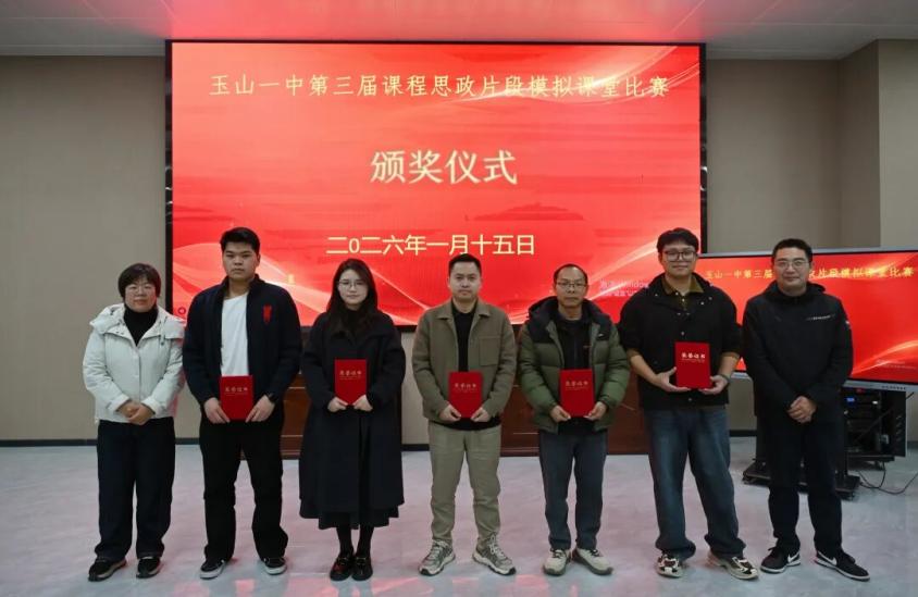 為落實立德樹人根本任務,打破思政教育與各學科教學壁壘,構建“大思政”育人生態(tài),1月15日晚,玉山縣第一中學第三屆課程思政教學比賽順利舉行。來自各教研組的11位教師參賽,學校副校長、校黨委委員等校領導,教師發(fā)展中心全體成員、各學科教研組長、備課組長及青年教師代表現(xiàn)場觀摩。