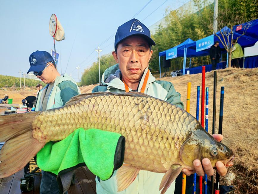 戎德波憑借對本土水域魚情的精準(zhǔn)把握和嫻熟釣技,成功牽起一尾重量級大魚。經(jīng)過短暫而緊張的搏魚過程,這尾重達(dá)12斤的黃金鯽魚王被順利入護,瞬間點燃現(xiàn)場氣氛。戎德波憑借關(guān)鍵時刻的驚艷表現(xiàn),于最后一場賽事14時22分釣獲重達(dá)12斤的全場最大單尾,以“絕殺”之勢鎖定勝局,成功斬獲本次2026中國湖城?鄱陽休閑垂釣嘉年華首戰(zhàn)冠軍,為家鄉(xiāng)贏得榮譽。