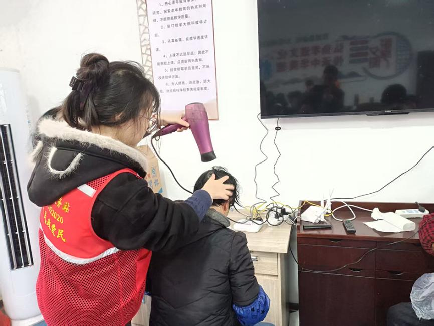 老人們陸續(xù)到場,在工作人員引導(dǎo)下有序簽到入座。染發(fā)區(qū)內(nèi),工作人員細心為老人系好圍布,仔細涂抹染發(fā)膏,一邊操作一邊與老人親切交談,關(guān)心他們的生活近況與新年期盼。洗發(fā)區(qū)里,志愿者用溫水輕柔地為老人沖洗頭發(fā),吹干時還特意調(diào)整風(fēng)溫,避免老人受涼。整個過程笑聲陣陣,老人們臉上始終洋溢著喜悅與滿足。