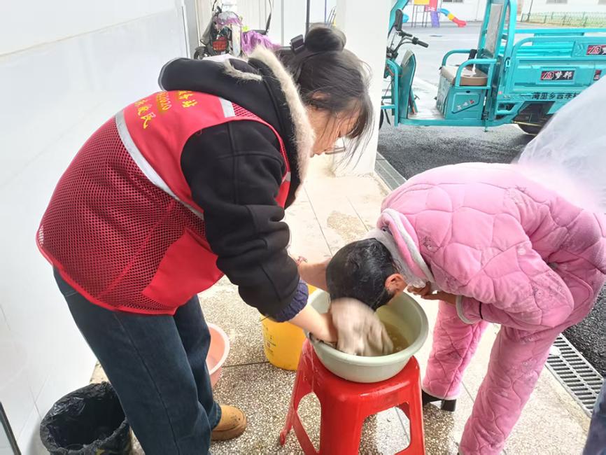 活動現(xiàn)場溫馨洋溢。工作人員提前布置了活動場地,劃分出染發(fā)區(qū)、洗發(fā)區(qū)與等候區(qū),并張貼了喜慶的新春畫紙,營造出濃厚的節(jié)日氛圍。考慮到老年人的身體狀況,活動特意選用溫和無刺激的染發(fā)產(chǎn)品,并提前協(xié)調(diào)李橋村村官、婦女主任等人員協(xié)助服務(wù),確保活動安全有序進行。