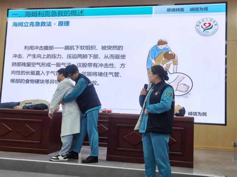 同日下午,鉛山縣總醫(yī)院人民醫(yī)院院區(qū)同步聯(lián)合鉛山一中開展專題科普活動(dòng),200余名高中師生參與其中。針對高中學(xué)生群體的認(rèn)知水平,醫(yī)院優(yōu)化課程設(shè)計(jì),進(jìn)一步擴(kuò)大急救知識(shí)覆蓋范圍。人民醫(yī)院院區(qū)急診科醫(yī)護(hù)骨干以“人人都能成為守護(hù)力量”為核心,用通俗直白的語言講解心肺復(fù)蘇(CPR)和海姆立克急救法的核心要點(diǎn)。課堂上,醫(yī)護(hù)骨干通過PPT直觀演示操作流程,將復(fù)雜急救步驟拆解為簡單好記的動(dòng)作要領(lǐng),讓同學(xué)們深刻理解“意外降臨之時(shí),主動(dòng)掌握急救技能比等待救援更具意義”——心肺復(fù)蘇是守護(hù)生命的“基礎(chǔ)技能”,海姆立克急救法則是應(yīng)對異物卡喉的“救命神器”。