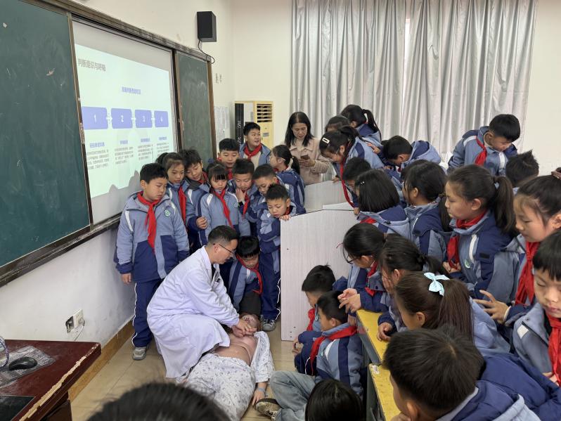 作為普及急救教育的重要陣地,校園是本次公益培訓(xùn)的重點(diǎn)場景。1月19日,鉛山縣總醫(yī)院中醫(yī)院院區(qū)率先聯(lián)合明德小學(xué)啟動(dòng)科普活動(dòng),針對小學(xué)生群體的認(rèn)知特點(diǎn)量身定制課程,來自該校的200余名師生現(xiàn)場參與培訓(xùn)?;顒?dòng)中,中醫(yī)院院區(qū)急診科醫(yī)護(hù)骨干憑借多年臨床急救經(jīng)驗(yàn),結(jié)合校園常見的跌倒、磕碰、氣道異物梗阻等突發(fā)安全事件案例,用通俗易懂的語言、生動(dòng)形象的表述,為師生們系統(tǒng)傳授心肺復(fù)蘇、創(chuàng)傷應(yīng)急處置等核心急救知識(shí),將專業(yè)醫(yī)學(xué)原理轉(zhuǎn)化為易于理解的生活常識(shí),幫助孩子們快速建立急救認(rèn)知。