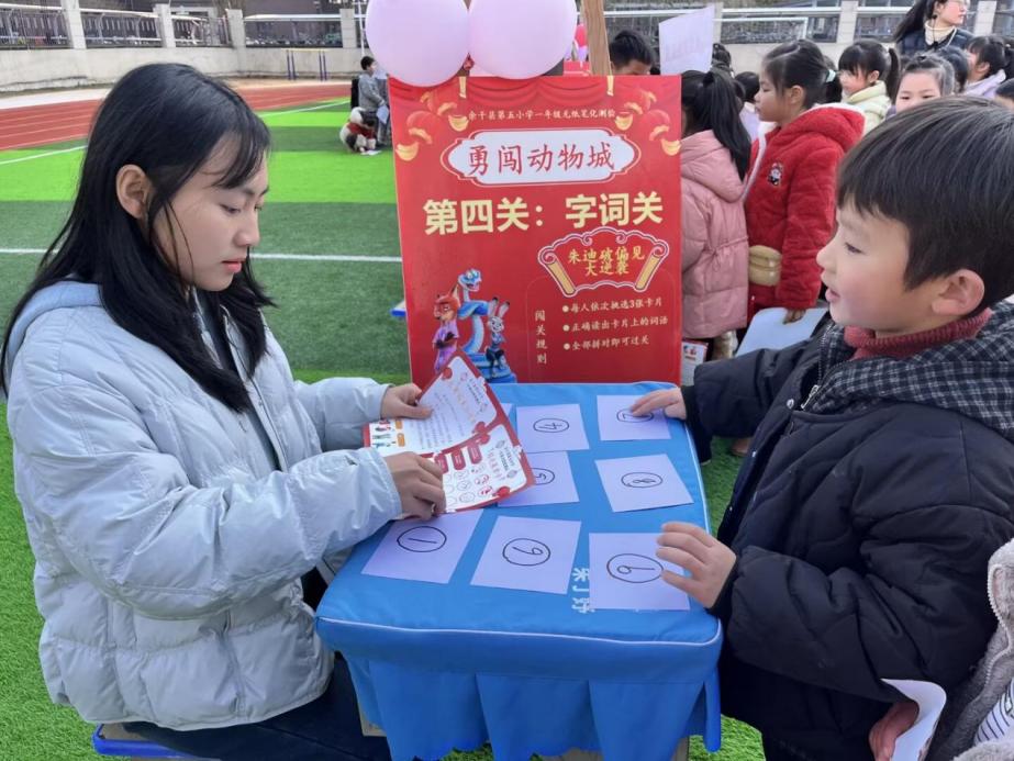 近日,余干縣第五小學(xué)一二年級(jí)“勇闖動(dòng)物城”主題無(wú)紙化測(cè)評(píng)圓滿落幕,該校以趣味闖關(guān)形式落實(shí)“雙減”,讓孩子們?cè)谟螒蛑姓顾仞B(yǎng)、享成長(zhǎng)。