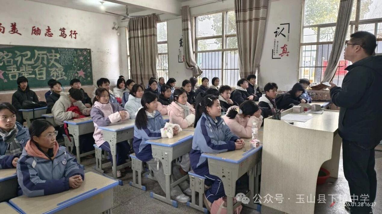 寒假將至,為增強(qiáng)學(xué)生法治觀念,提升自我保護(hù)意識(shí),切實(shí)筑牢校園安全防線,保障學(xué)生在假期期間的身心健康與生命財(cái)產(chǎn)安全,1月28日中午,玉山縣下鎮(zhèn)初級(jí)中學(xué)法治副校長(zhǎng)、下鎮(zhèn)派出所相關(guān)負(fù)責(zé)人來(lái)到學(xué)校開(kāi)展寒假前安全教育活動(dòng)。