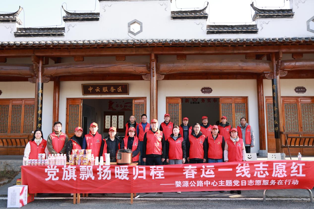 2月2日下午,正值春運(yùn)首日,婺源公路事業(yè)發(fā)展中心黨支部組織黨員志愿者走進(jìn)中云服務(wù)區(qū),開展“黨旗飄揚(yáng)暖歸程·春運(yùn)一線志愿紅”主題黨日志愿服務(wù)活動(dòng)。黨員志愿者們以實(shí)際行動(dòng)踐行初心使命,將黨組織的溫暖送到春運(yùn)一線,為奔波在途的司乘人員保駕護(hù)航、傳遞溫情。