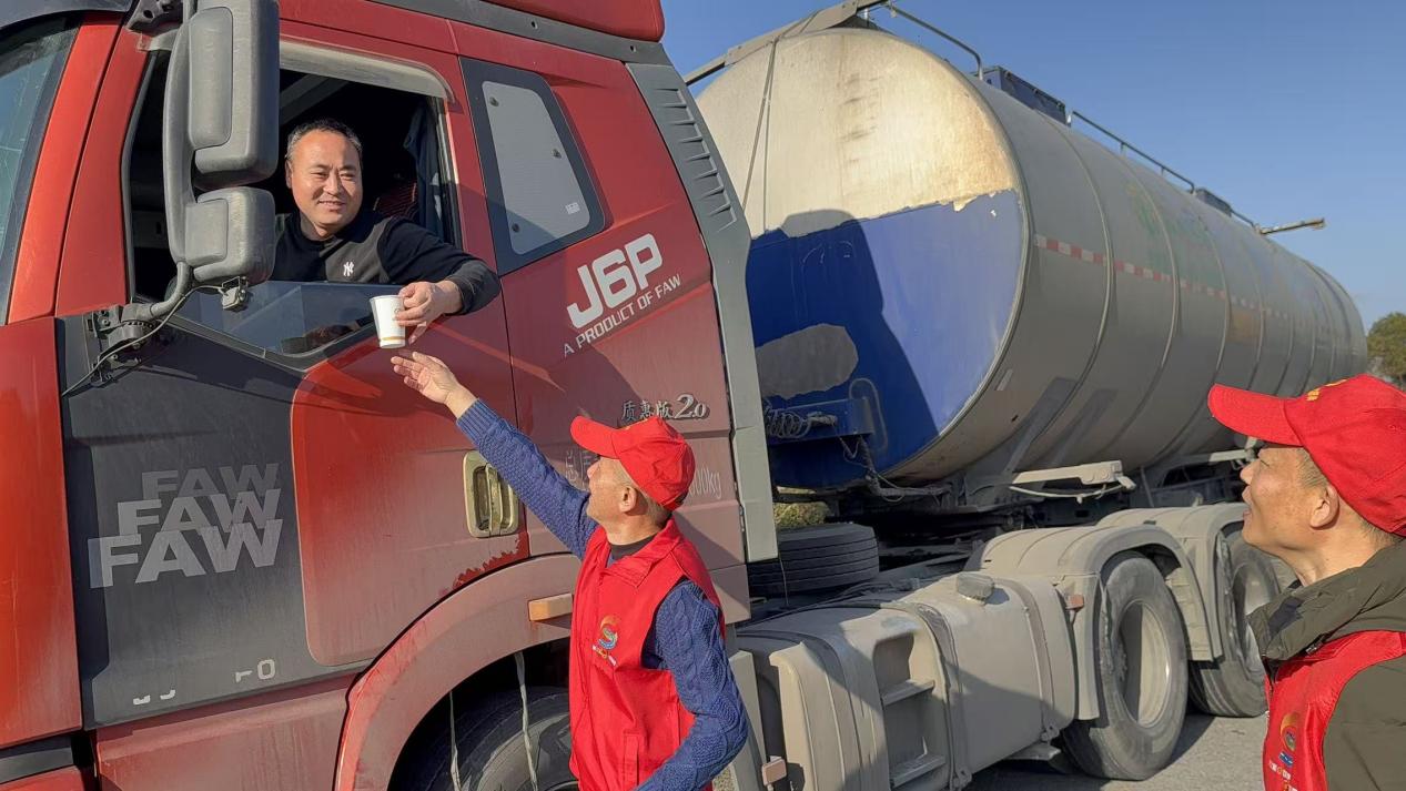 服務(wù)區(qū)內(nèi),志愿“紅馬甲”身影活躍。志愿者們在中云服務(wù)區(qū)人流集中區(qū)域設(shè)立便民服務(wù)臺(tái),熱情周到地為過往司乘人員遞上一杯杯熱氣騰騰的紅糖姜茶,驅(qū)散冬日寒意;同時(shí)免費(fèi)發(fā)放八寶粥、方便面、礦泉水等實(shí)用物資,為長途出行人員補(bǔ)充體力、提供便利。黨員志愿者們還耐心解答路況咨詢,溫馨提醒安全行車、謹(jǐn)慎駕駛,以實(shí)際行動(dòng)詮釋“奉獻(xiàn)、友愛、互助、進(jìn)步”的志愿服務(wù)精神,讓黨旗在春運(yùn)服務(wù)一線高高飄揚(yáng)。