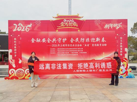 2月4日下午,在廣信區(qū)防范和打擊非法金融活動專項小組辦公室的統(tǒng)一組織下,人保財險廣信支公司在旭日廣場參與了“金融安全共守護·全民防非迎新春”為主題的防范非法金融宣傳教育活動。