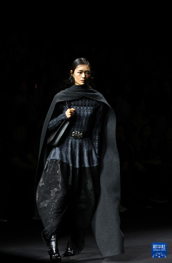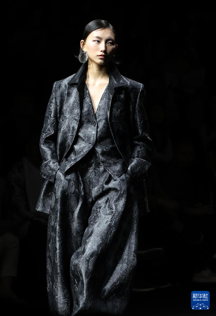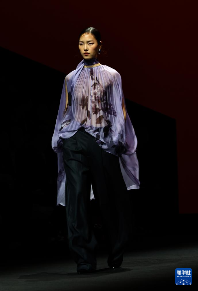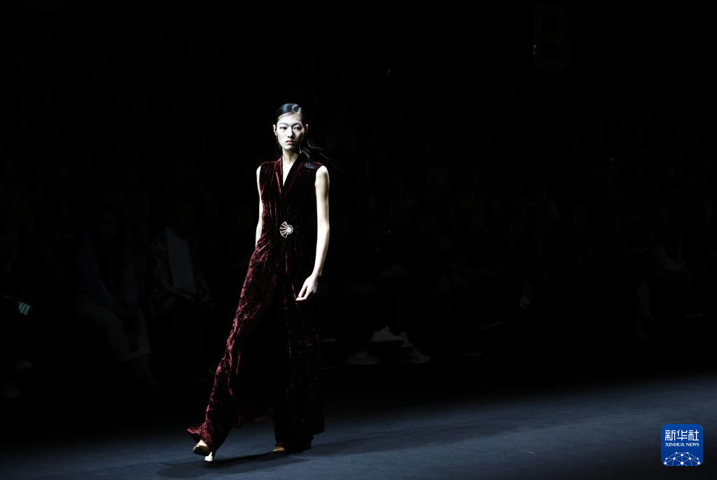 3月25日,在位于上海新天地太平湖畔的上海時裝周紅庭秀場,模特展示時裝。