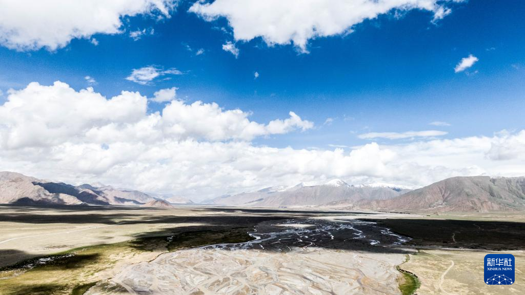 高原夏日,位于青海省海西蒙古族藏族自治州格爾木市境內(nèi)的野牛溝辮狀河流景色壯麗如畫。辮狀河流因多河道、多次分叉和匯聚而形如發(fā)辮,河流蜿蜒曲折。